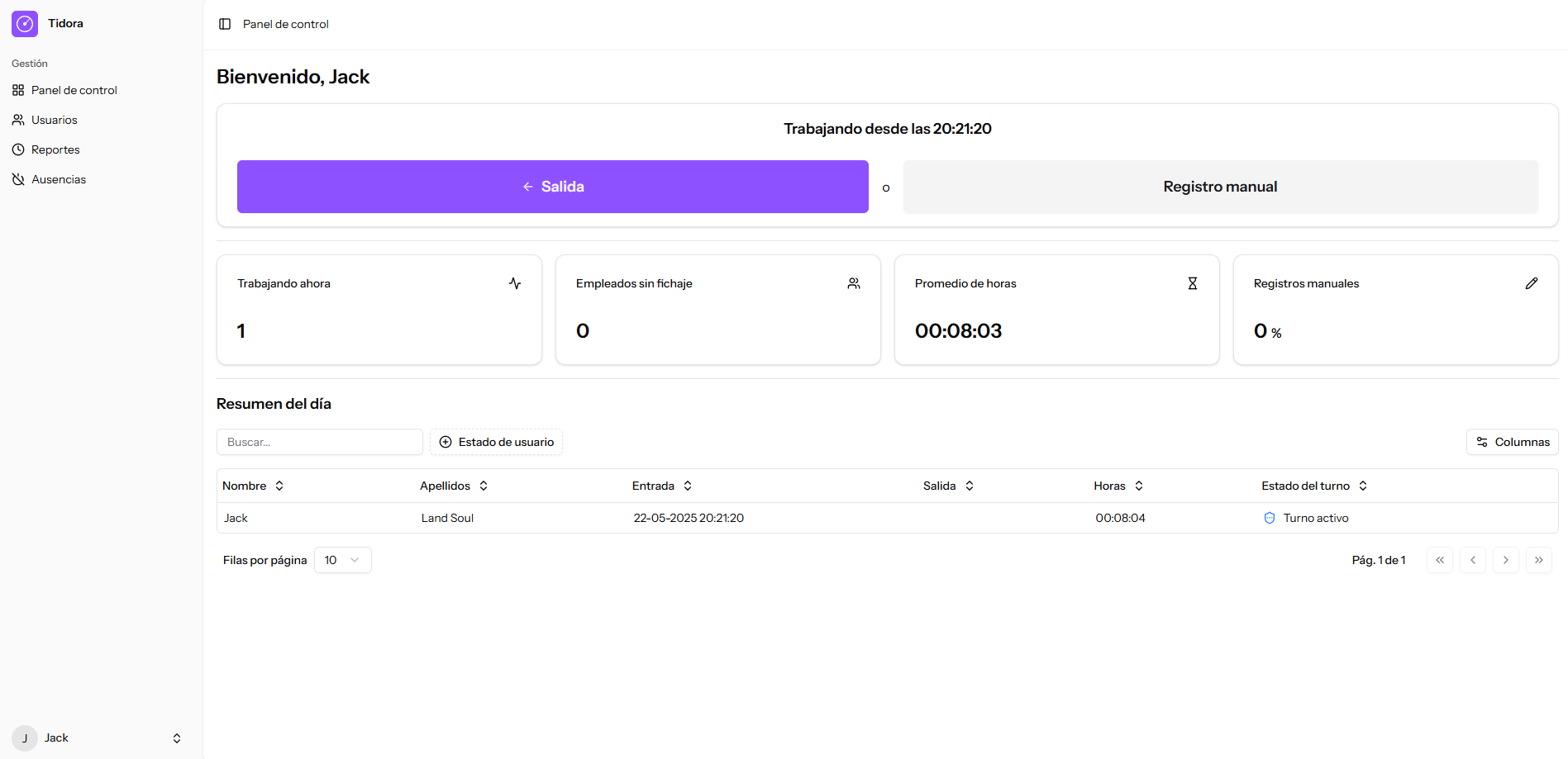 Registra la jornada laboral desde cualquier dispositivo, gestiona ausencias fácilmente y genera informes exportables, cumpliendo con la normativa laboral vigente en España.